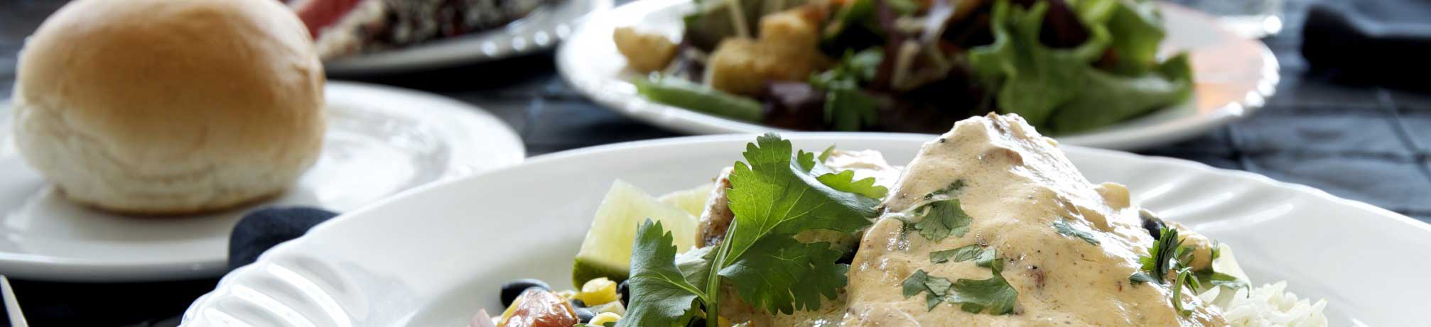 Kebabliha tai vöner, leipäkuutio, salaatti, tomaattikastike, jogurtti