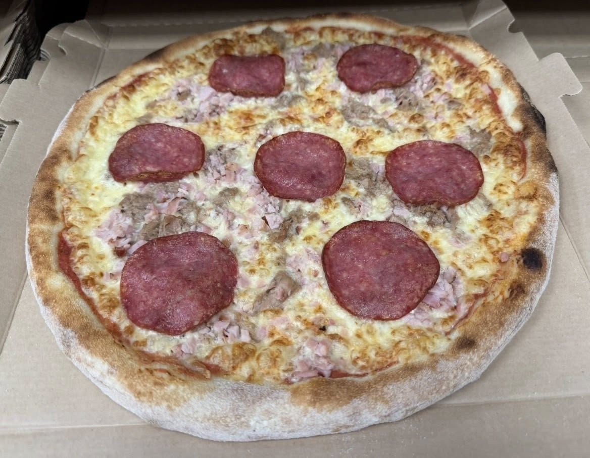 Pizzasuikale, salami, ananas, sipuli, katkarapu, pekoni, aurajuuto, extrajuusto